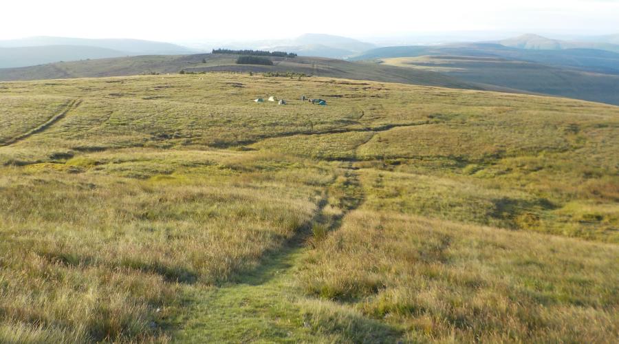 Following a meal at 6pm in the Bear (High Street, NP8 1BW, which is less than 100m from the car park in Crickhowell, we will make sure we are ready to leave the car park at7:45pm. It will then be a 5 minute drive to the secluded lay-by where we will leave our cars at the hike start point. Then in darkness a steep ascent to the ramparts of the ancient Crug Hywel hill fort to get to the top of Table Mountain (451m). Another 340m of ascent will get us over Pen Cerrig-Calch (701m), to then find a place to sleep at an altitude of about 650m if the weather is kind. We’ll get up at dawn and then to the top of Pen Allt Mawr (719m), for an early morning panoramic view across all of the Black mountains; followed by Pen Twyn Glas (646m) and Mynydd Llysiau (663m) to get to the highest summit Waun Fach (810m). We then continue over Pen y Gadair Fawr before finding a suitable place to spend our second night high in the mountains. The next day we have Pen Twyn Mawr (658m), Disgwylfa (540m), Crug Mawr (550m) and Blaen-yr Henbant (498m) to contend with, before descending to go over the Upper Cwm Bridge over the Grwyne Fechan, past the ancient church (first recorded in 1060) and into the village of Llanbedr and on to our cars.