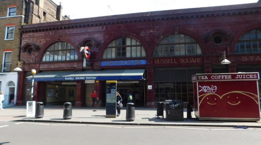 1. Russell Square Underground Station: Architect Leslie Green, built 1906. Distinctive oxblood-red terracotta façade, iconic of early Underground stations on the Piccadilly Line.