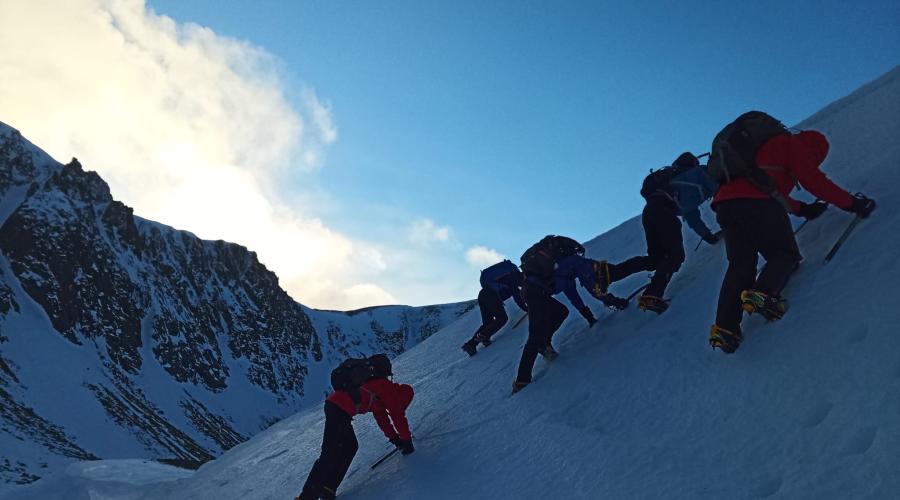 You'll need your normal mountain walking gear as well as an ice axe, crampons and a helmet. Ideally a pair of winter boots too. All this is available to hire from Tiso Aviemore on the Friday afternoon. Find out more at https://www.tiso.com/hire. Expect to pay around £50 for a three-day hire of boots, crampons, ice axe and helmet.